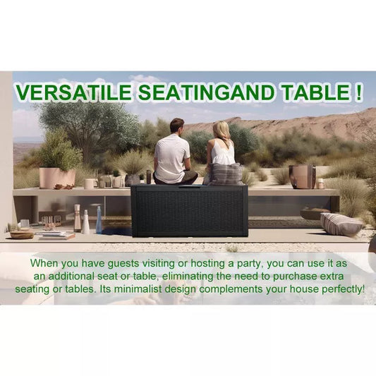 Sersper 100 Gallon Large Resin Deck Box Outdoor Storage Boxes for Patio Furniture,Garden Tools and Pool Supplies-Waterproof,Lockable,Black