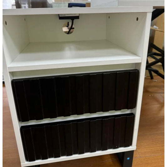 Anrist Makeup Vanity Set with Mirror LED &Charging Station,Vanity Desk with Drawers,Jewelry Cabinet and Stool for Bedroom, White&Oak