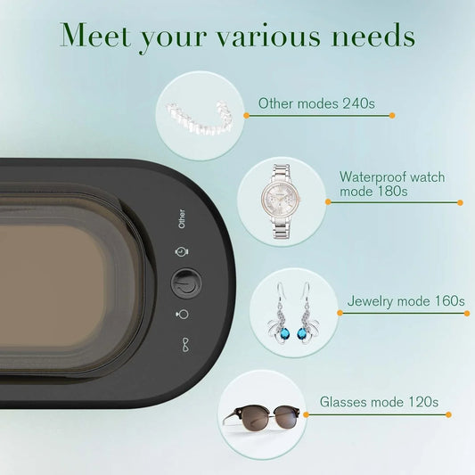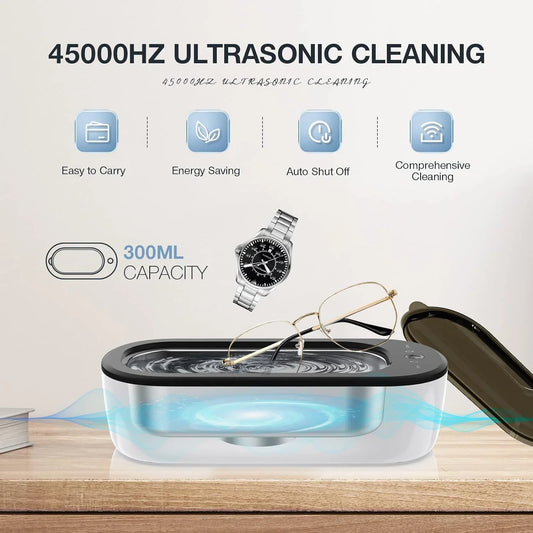 Jewelry Cleaner, Professional Ultrasonic Cleaning Machine for All Jewelry-SUS 304 Tank, 45kHz Portable Household Cleaner for Gold, Silver, Eyeglasses, Watches, Rings, Necklaces, Dentures
