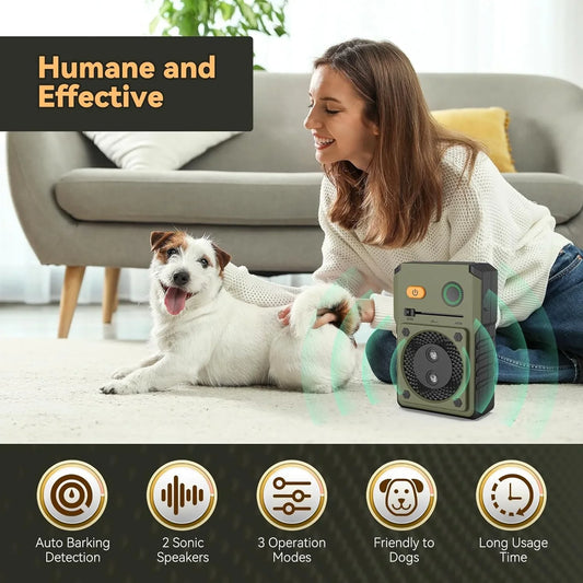 Anti Bark Device for Dogs, Rechargeable Dog Barking Deterrent Devices with 3 Modes, 50FT Anti Dog Barking Device Stop Dogs Barking, Anti Bark Box for Indoors Outdoors Puppy Large Dogs, Green