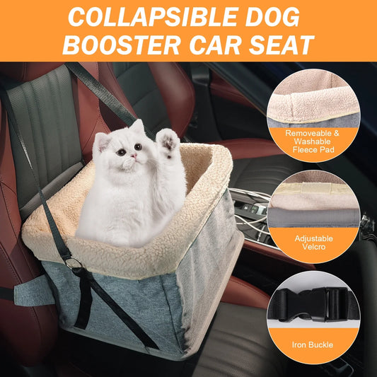 ZUPOX Dog Car Seat for Small Dogs, Deluxe Dog Booster Seat with Metal Frame Construction and Safety Leash, Portable Puppy Dog Car Seat, Perfect for Small Pets, Grey