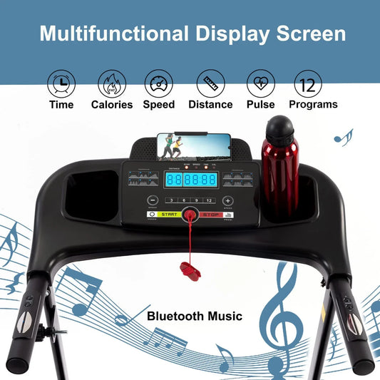 Folding Electric Treadmill Motorized Running Machine with Bluetooth Speaker 12 Perset Programs Walking Jogging Treadmill for Office Home Gym,Max Wight 300lb