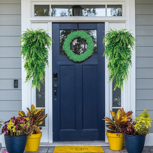 2 Pack Artificial Hanging Boston Fern Plants Faux Rattan Plants Fake Vines Greenery for Indoor Outdoor Room Wall Wedding Patio Porch Decor