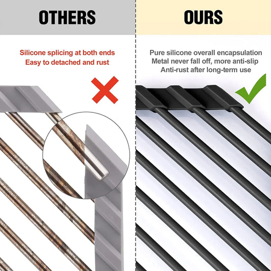 Tomorotec Small Triangle Roll-Up Dish Drying Rack with Silicone Coating Stainless Steel Frame for Sink Corners, Multipurpose Over-The-Sink Kitchen Drainer & Organizer for Space-Saving Storage (Black)