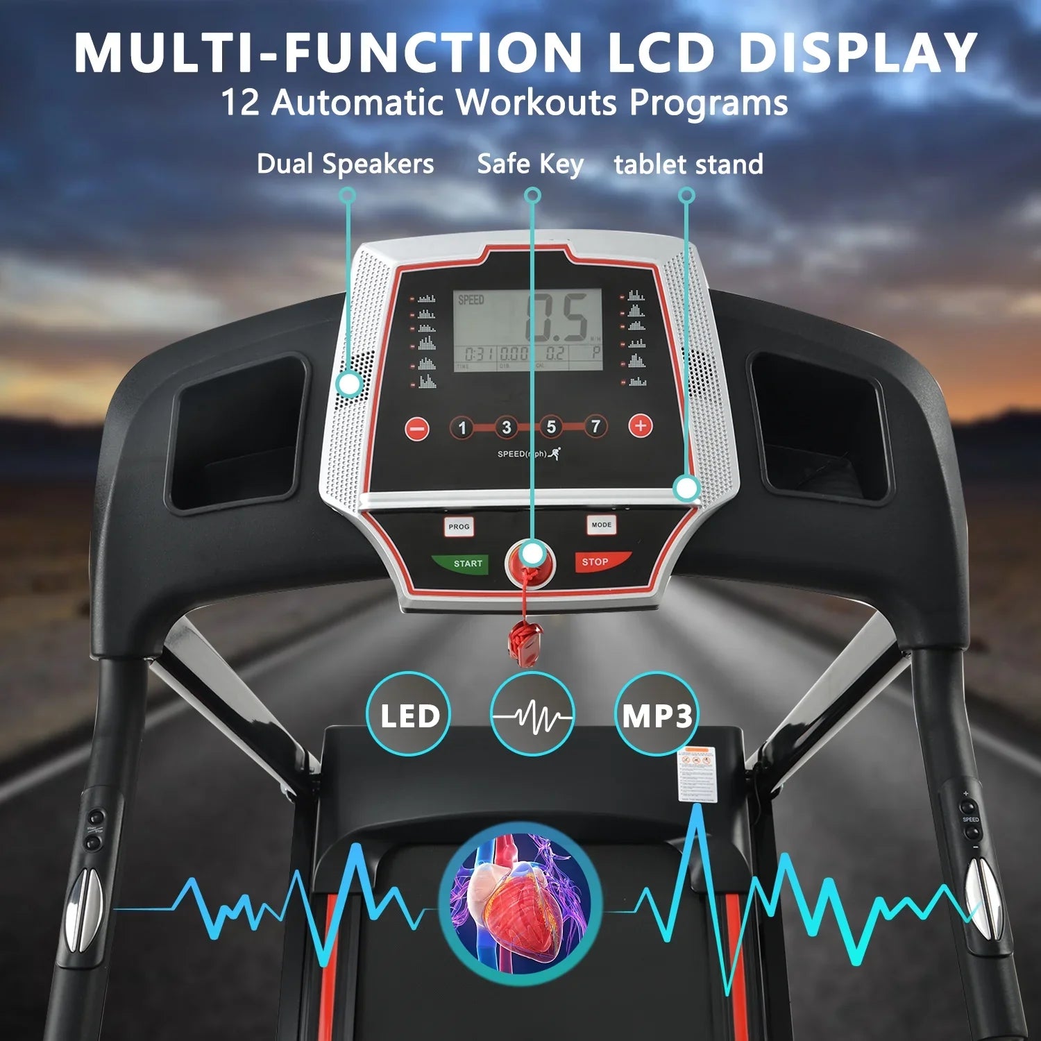 3.5HP Folding Incline Treadmill with 330 LB Capacity 15 Preset Programs MP3 Electric Walking Treadmill Machine For Home