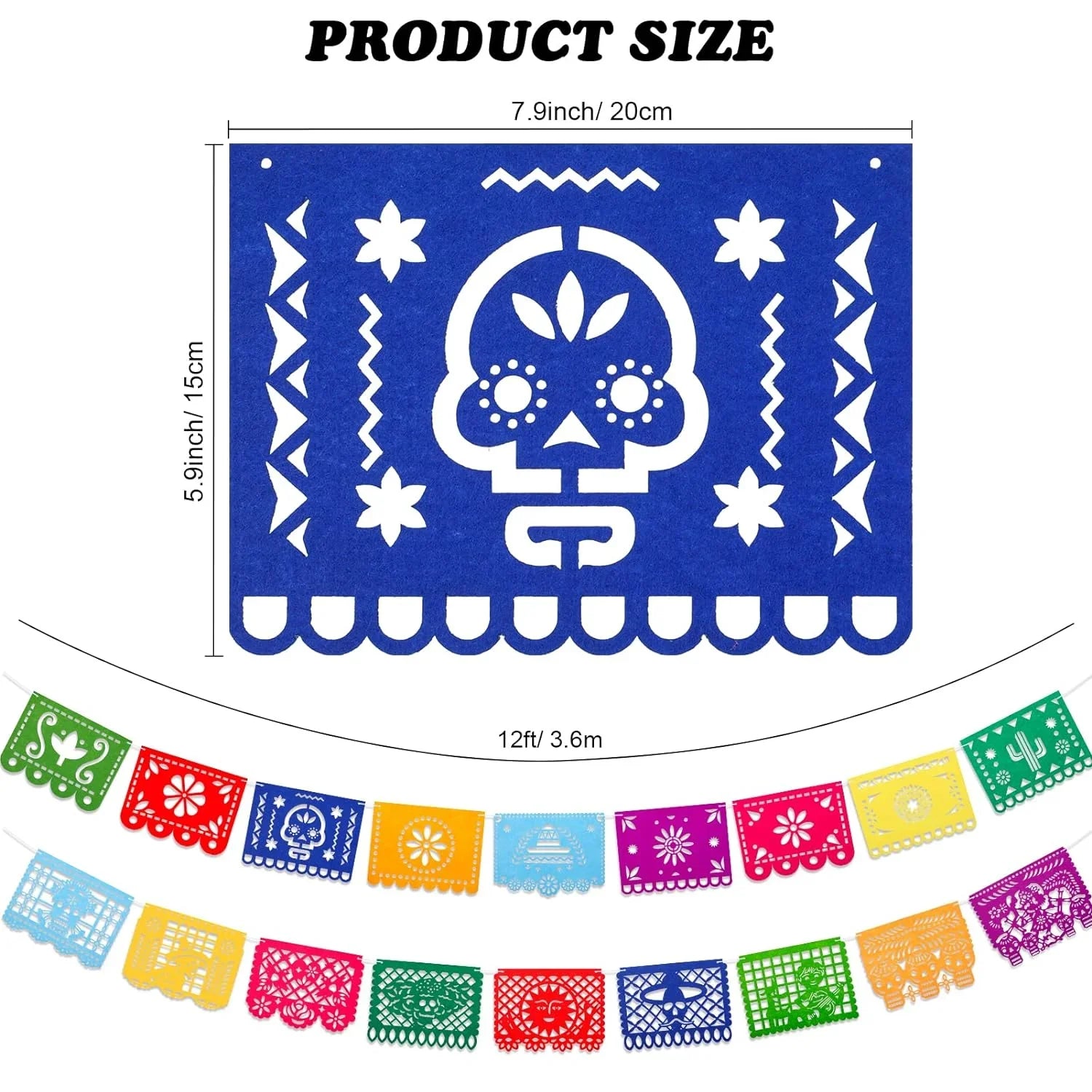 4 Pack Fiesta Party Banner Mexican Felt Banner Cinco de Mayo Papel Picado Fiesta Banner Cino de Mayo Party Decorations Supplies
