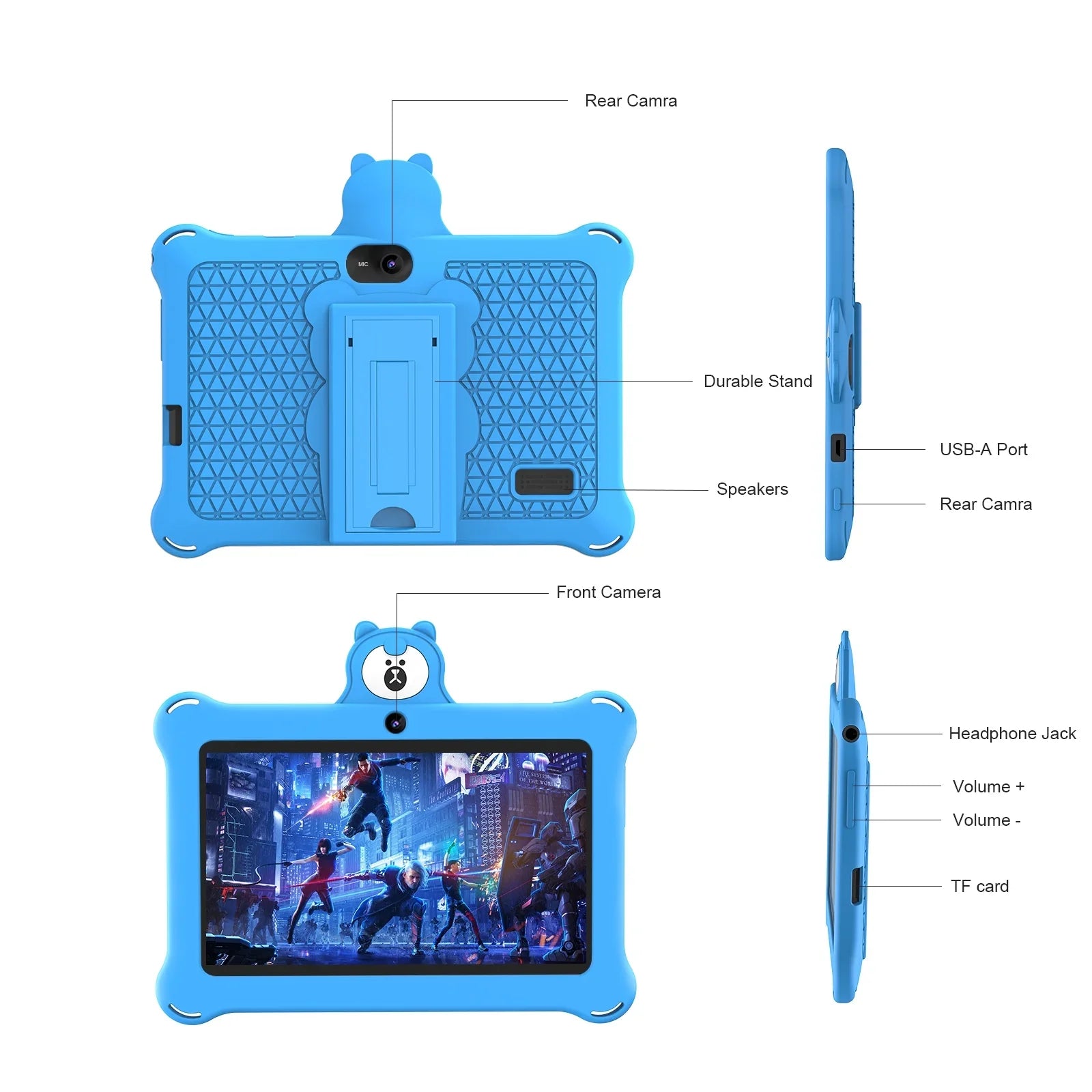 BAKEN Kids Tablet 7 inch 32GB WiFi Android Tablet For Kids| Bluetooth | Parental Control | Pre-Installed Learning Tablet Apps for Toddlers Children | with Shockproof Case(Blue)