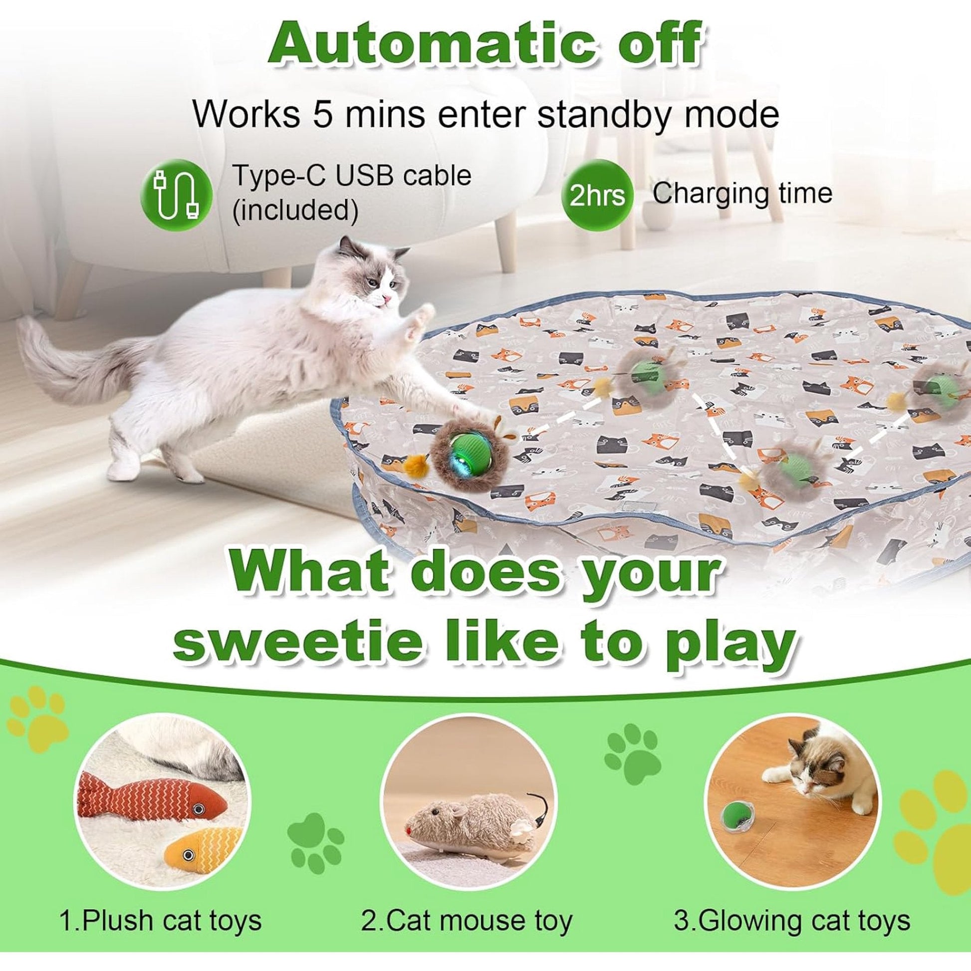 Blue Interactive Cat Toys Ball Fast Rolling in Pouch,Interactive Cat Toy