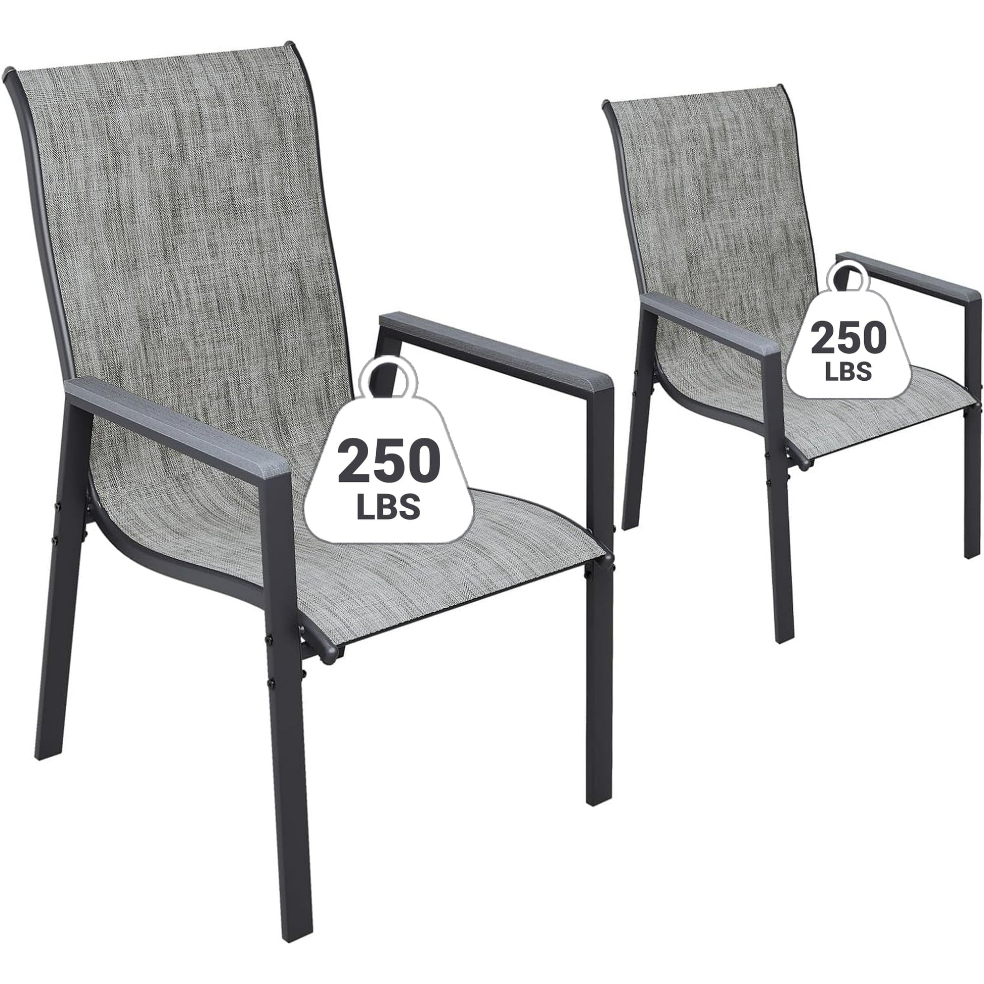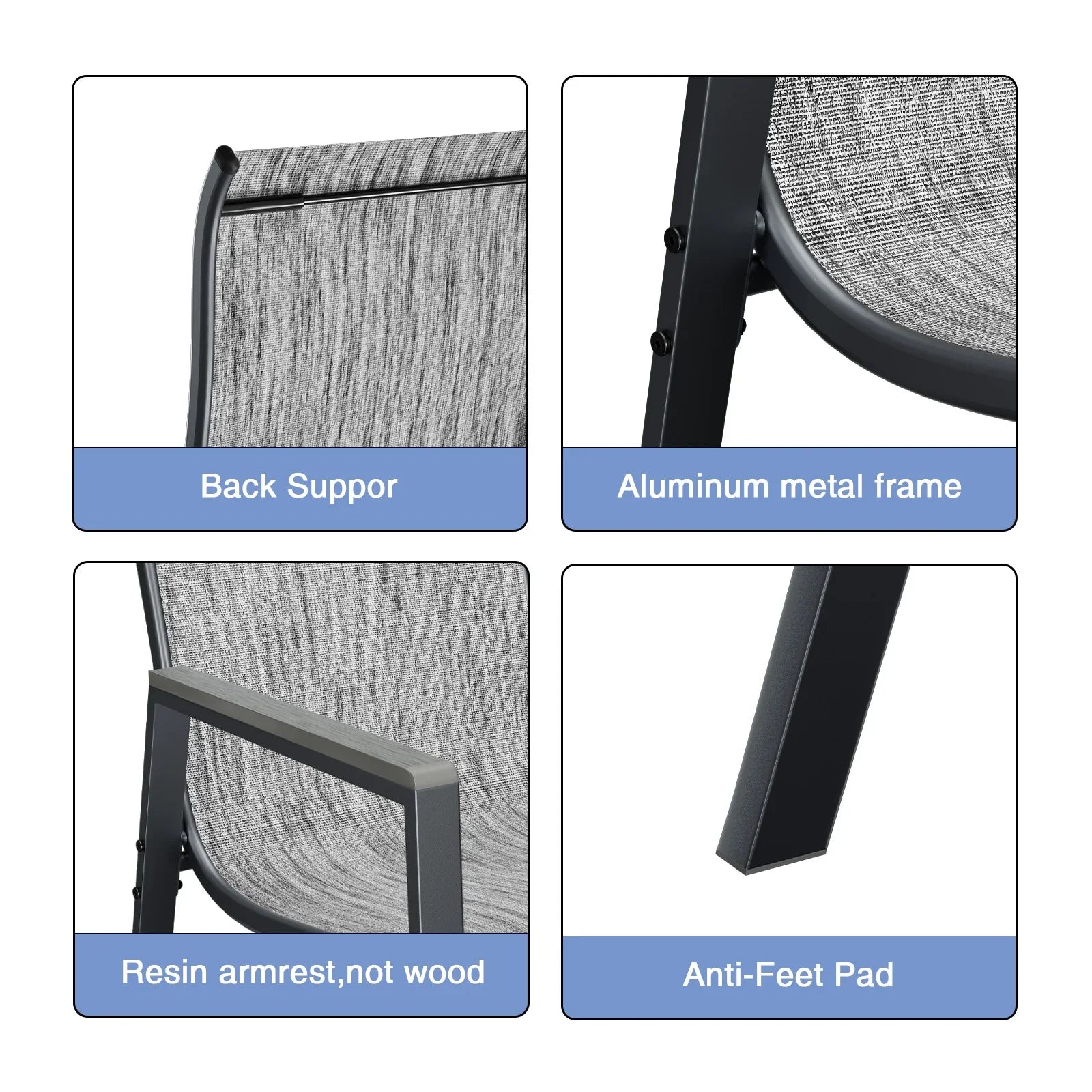 ELPOSUN Outdoor Patio Dining Chairs Set of 2, Stackable Aluminum Chairs with Armrest,Durable Frame for Lawn Garden Backyard, Light Gray