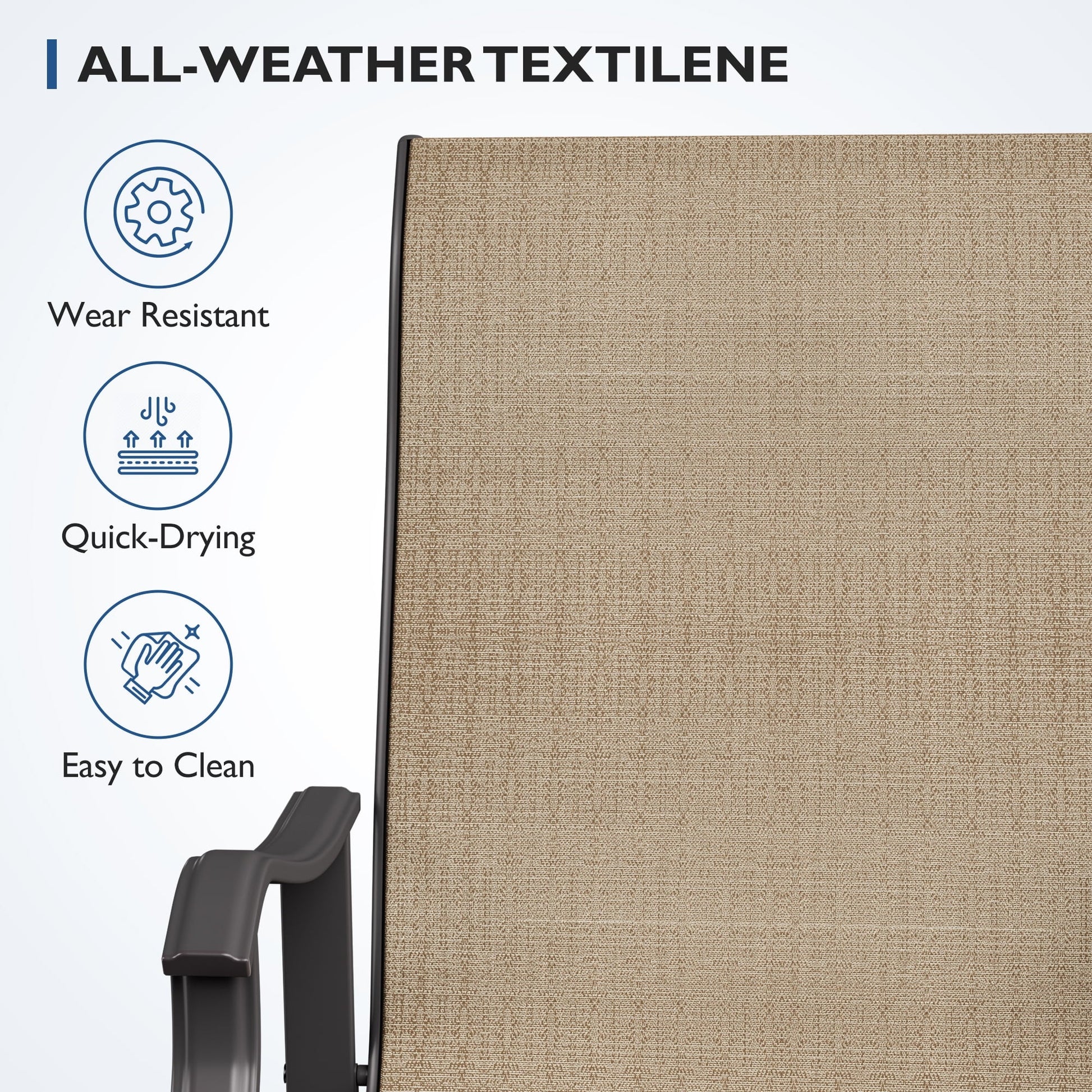 ELPOSUN Patio Bar Stools Set of 2, Outdoor Bar Height Patio Chairs for Backyard, Pool, Garden, Deck with High Back and Armrest, All-Weather Mesh, 300lb Capacity, Khaki