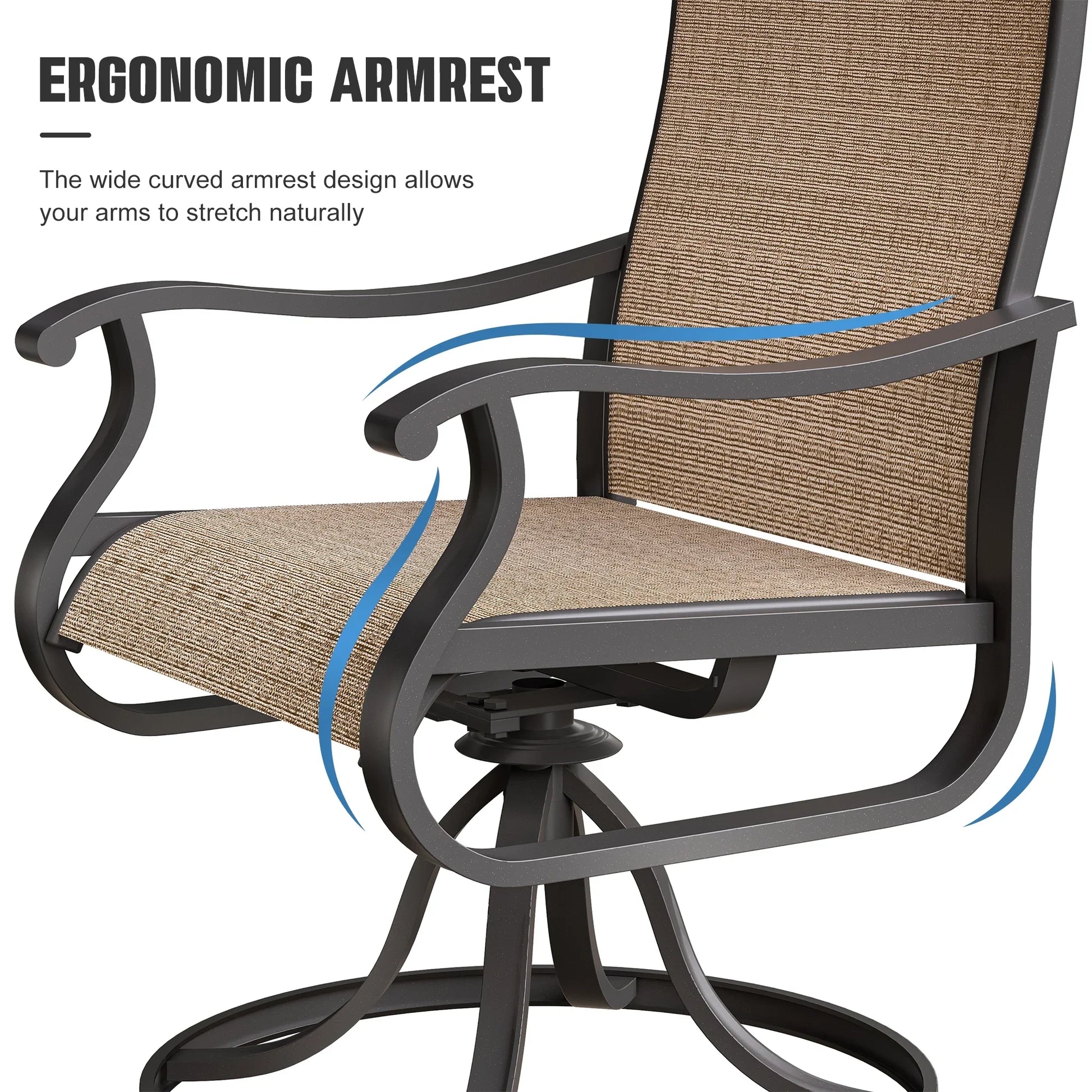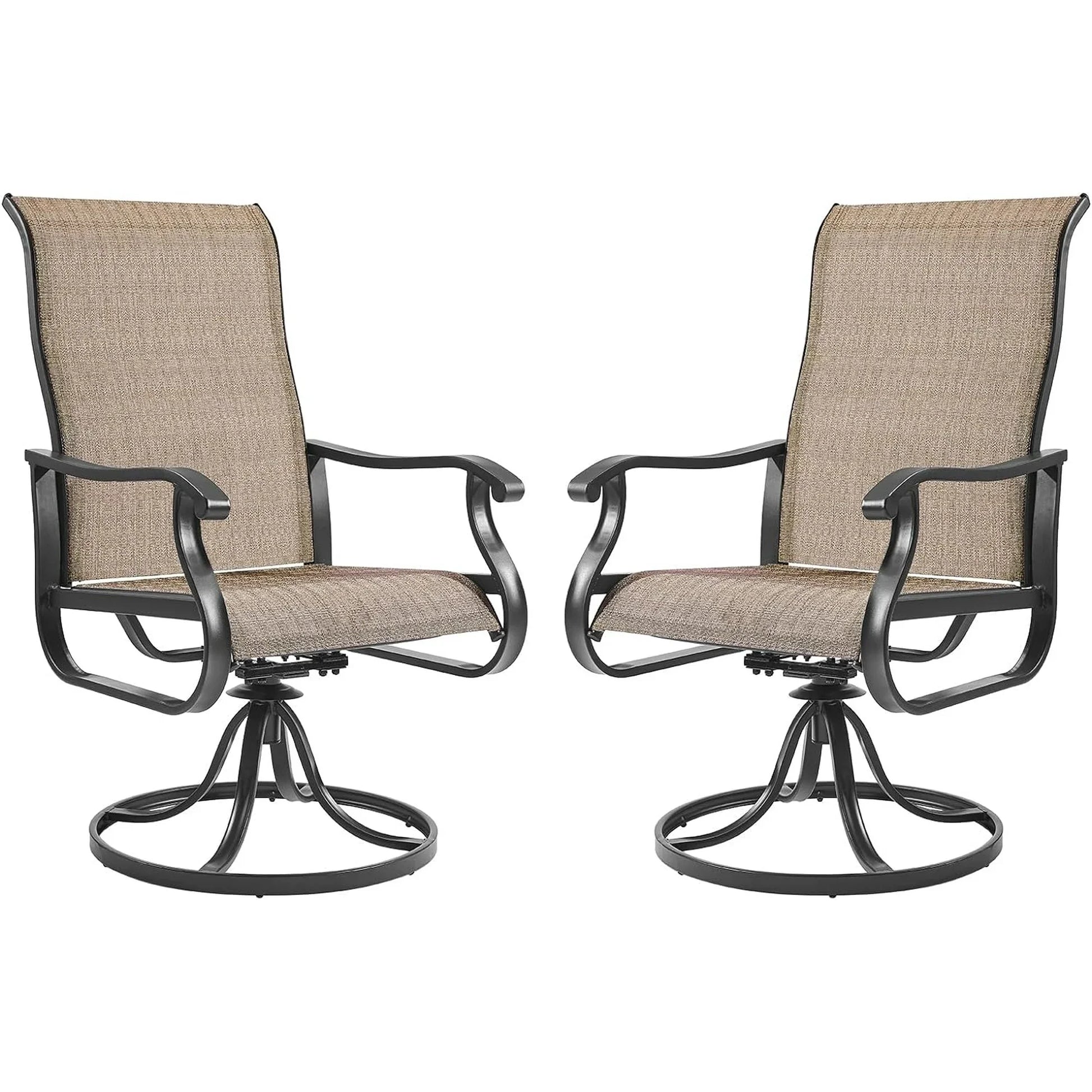 ELPOSUN Patio Swivel Chairs Set of 2, Outdoor Dining Chairs High Back All Weather Breathable Textilene Outdoor Swivel Chairs with Metal Rocking Frame for Lawn Garden Backyard Deck, Khaki