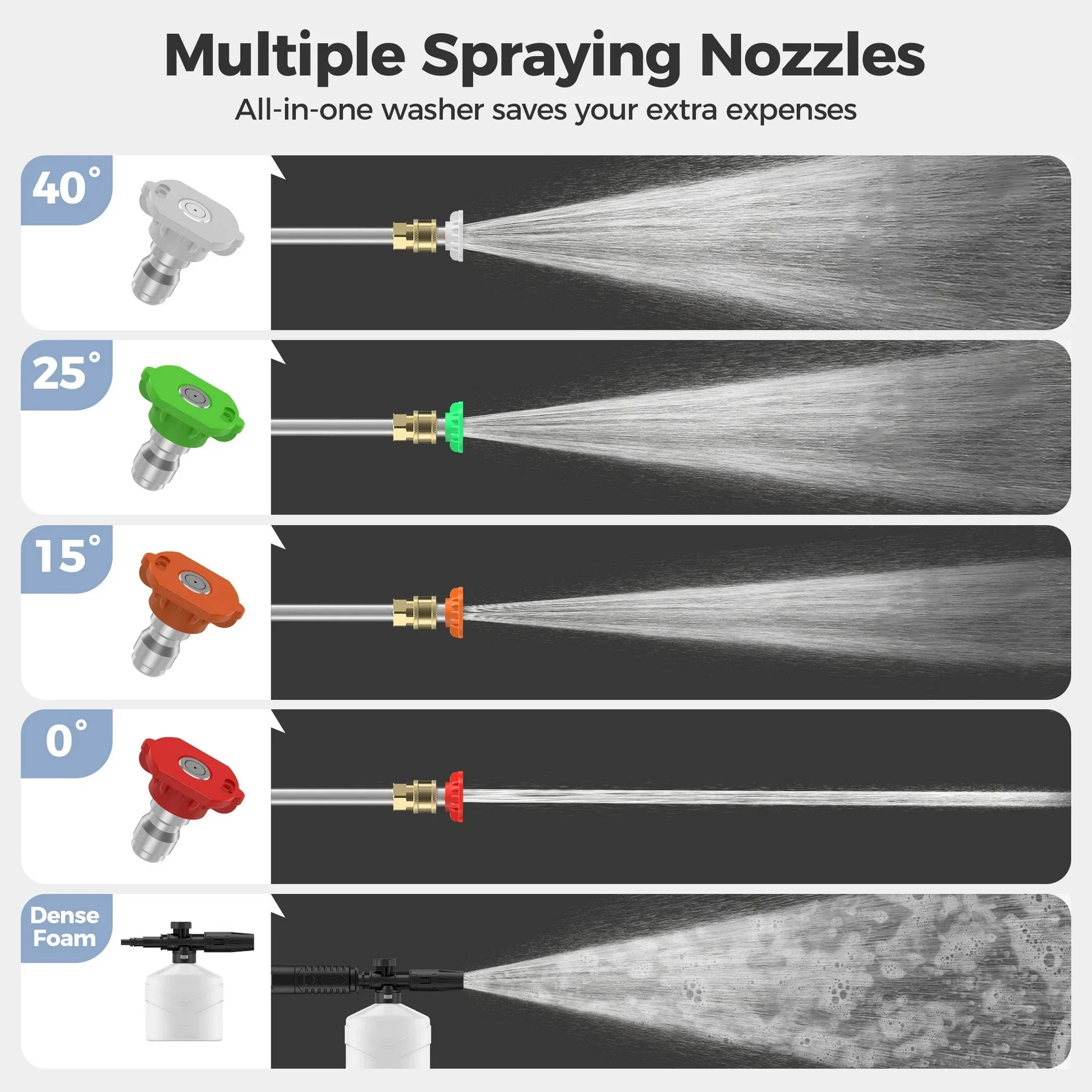 HIJOB Electric Pressure Washer, 3000 PSI, Max. 2 GPM Power Washer w/ 20 ft Hose, 4 Quick Connect Nozzles, Foam Cannon, Portable to Clean Patios, Cars, Fences, Driveways