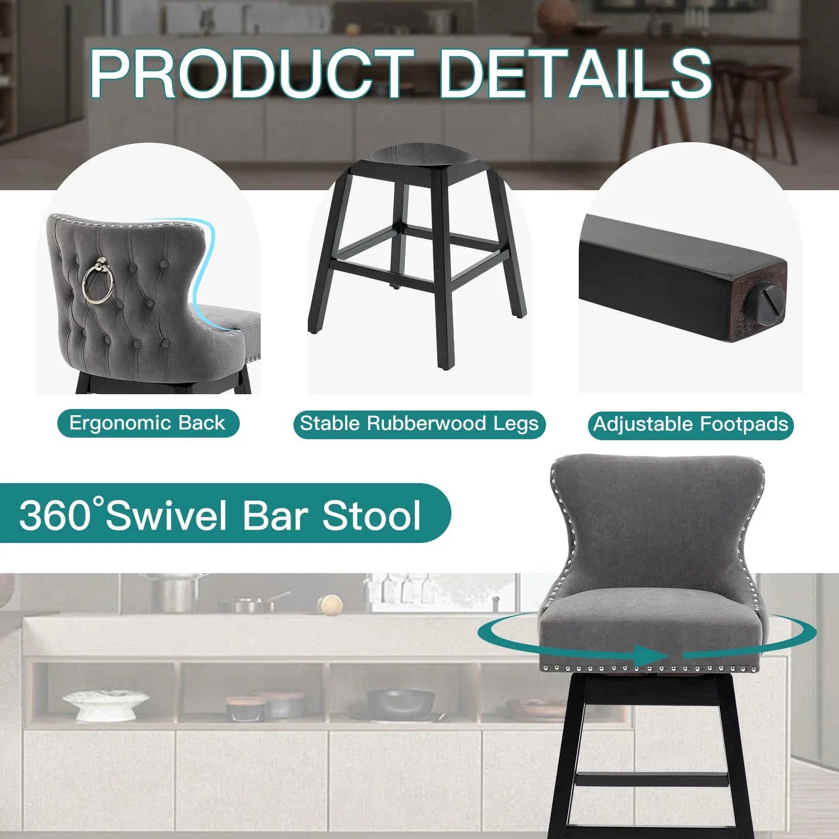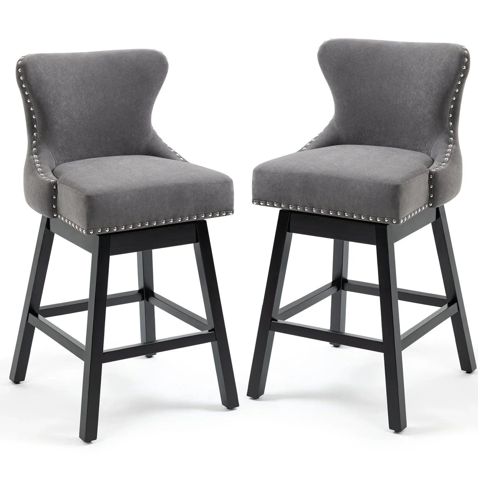 Homhum 29-Inch Bar Stools Set of 2, 360° Swivel and Wood Legs, Fabric Island Chairs - Gray