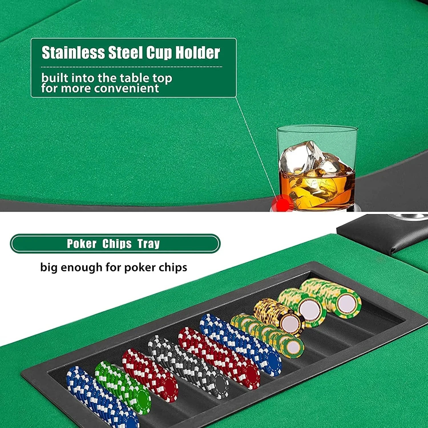 HOMHUM Game Poker Table w/Stainless Steel Cup Holder Casino Leisure Table for 9 Players, Green Felt