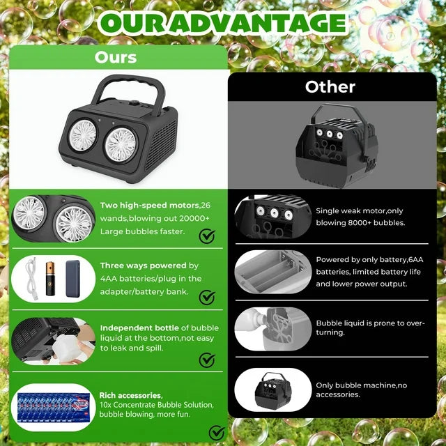 JUGAAD LIFE Bubble Machine for Toddlers & Kids Upgrade Automatic Bubble Blower with 2 Fans, Bubble Maker Plug-in or Batteries Bubble Toys for Kids Outdoor Birthday Party, Wedding