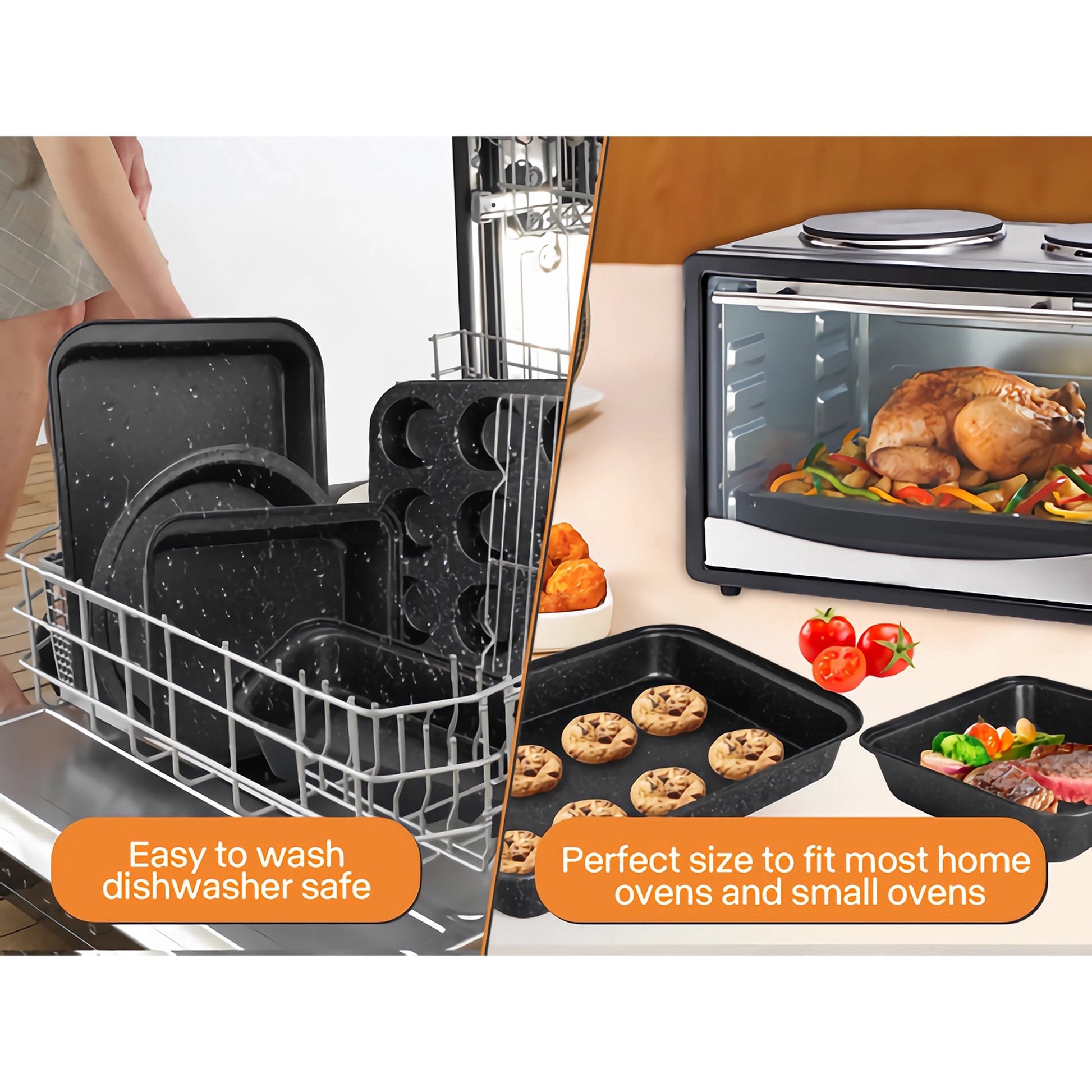 LIMICAR 5 Piece Baking Pan Sets,Nonstick Bakeware Set with Round Cake Pan, Square Cake Pan, Loaf Pan, Muffin Pan & Roasting Pan,Carbon Steel Baking Sheet Set Easy Clean
