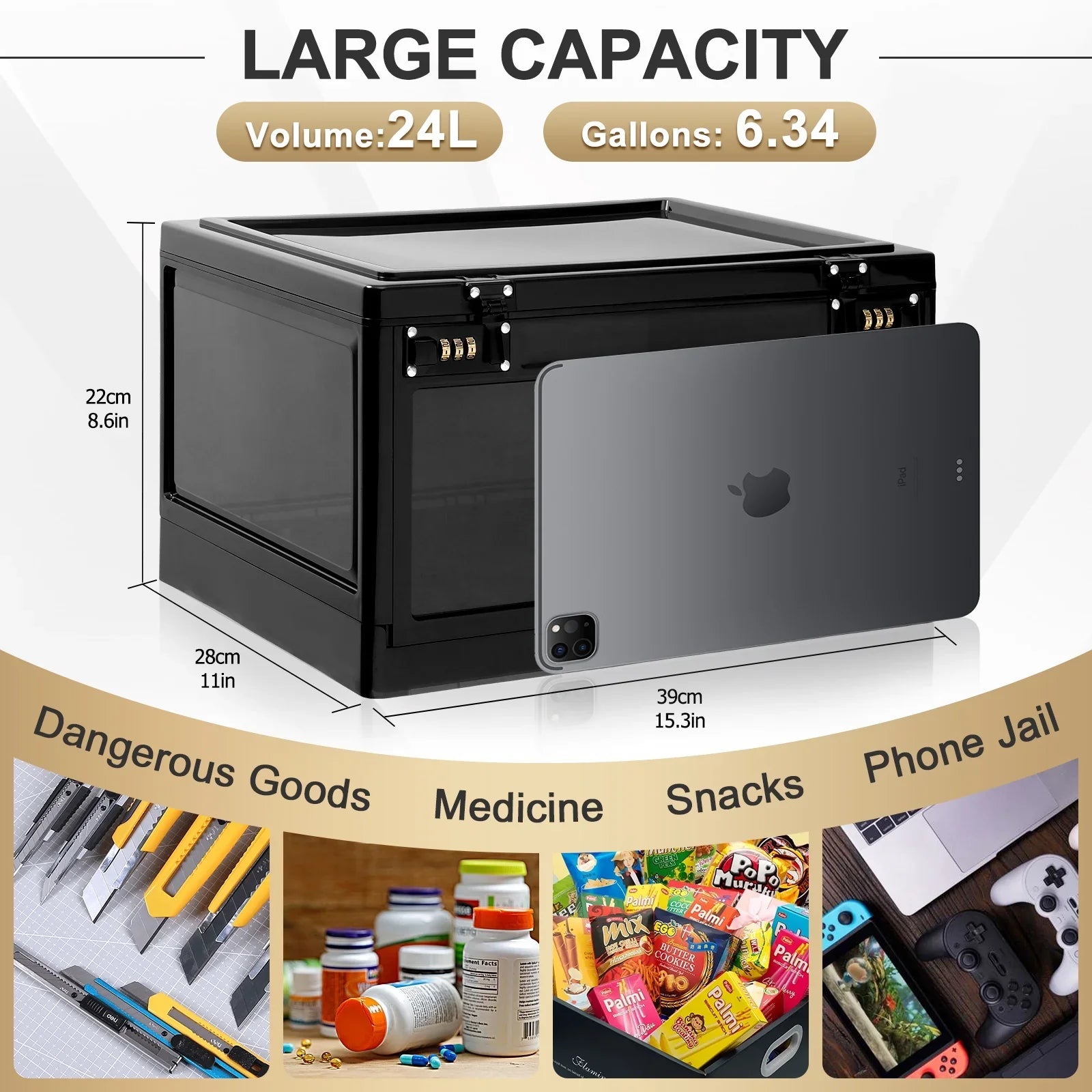 Locbbie Lockable Storage Box, Lock Box for Medicne Safe, Cell Phone Jail for Home/ Office, Single Piece