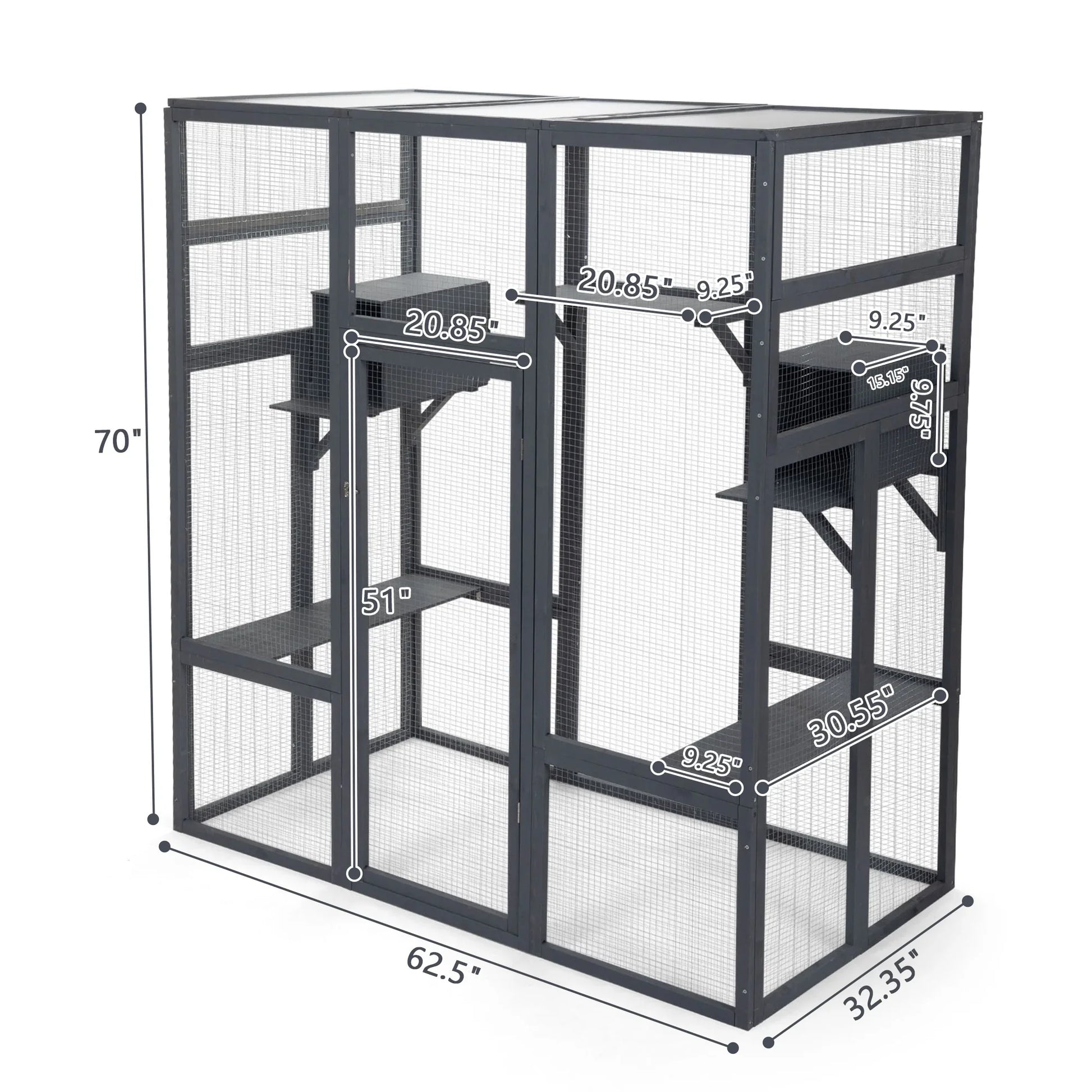 Pefilos 70" Outdoor Cat House for Large Cats, Enclosure Wood Cat Cage with Platforms and Small House, Kitty Catio Condo Playpen, Gray