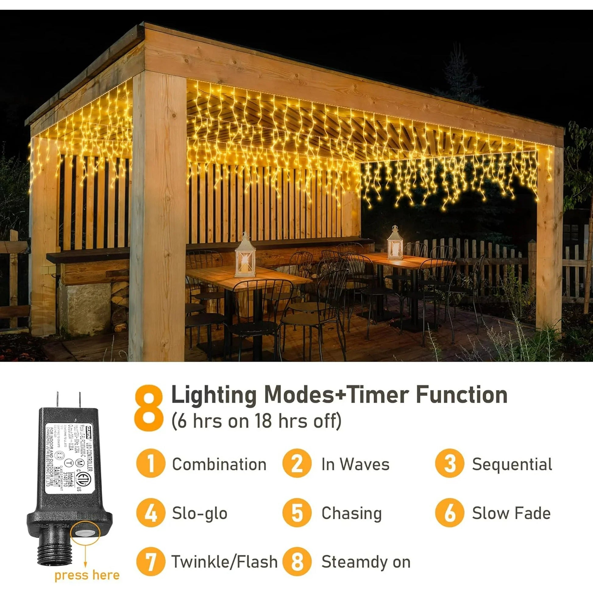 Rohatie Icicle Christmas Lights Outdoor, 32.8 FT 400 LED Connectable Christmas Curtain String Lights with 8 Modes & Memory Timer Waterproof for Christmas Decorations (Warm White)