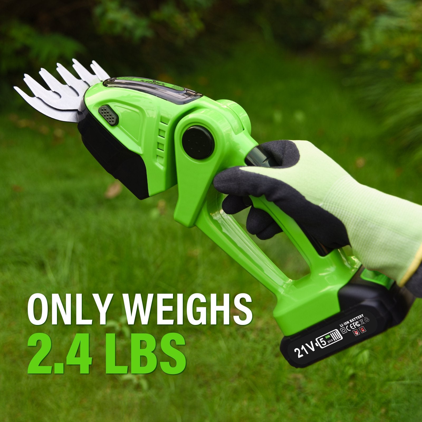 SOYUS Cordless Hedge Trimmer, 21V Electric Handheld Grass Cutter, 2-in-1 Electric Grass Trimmer & Shrubbery Trimmer