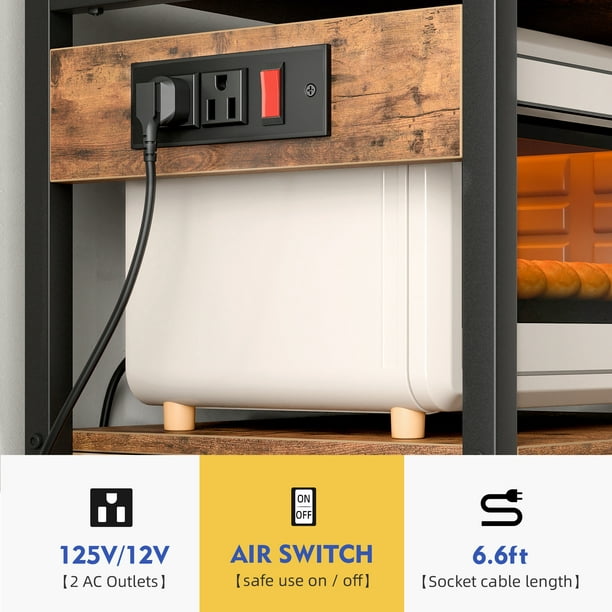 spanspace Industrial Baker's Rack, Microwave Oven Stand, Free Standing Kitchen Island Utility Cart Storage Shelf Organizer with 10 Hooks, Rustic Brown Finish