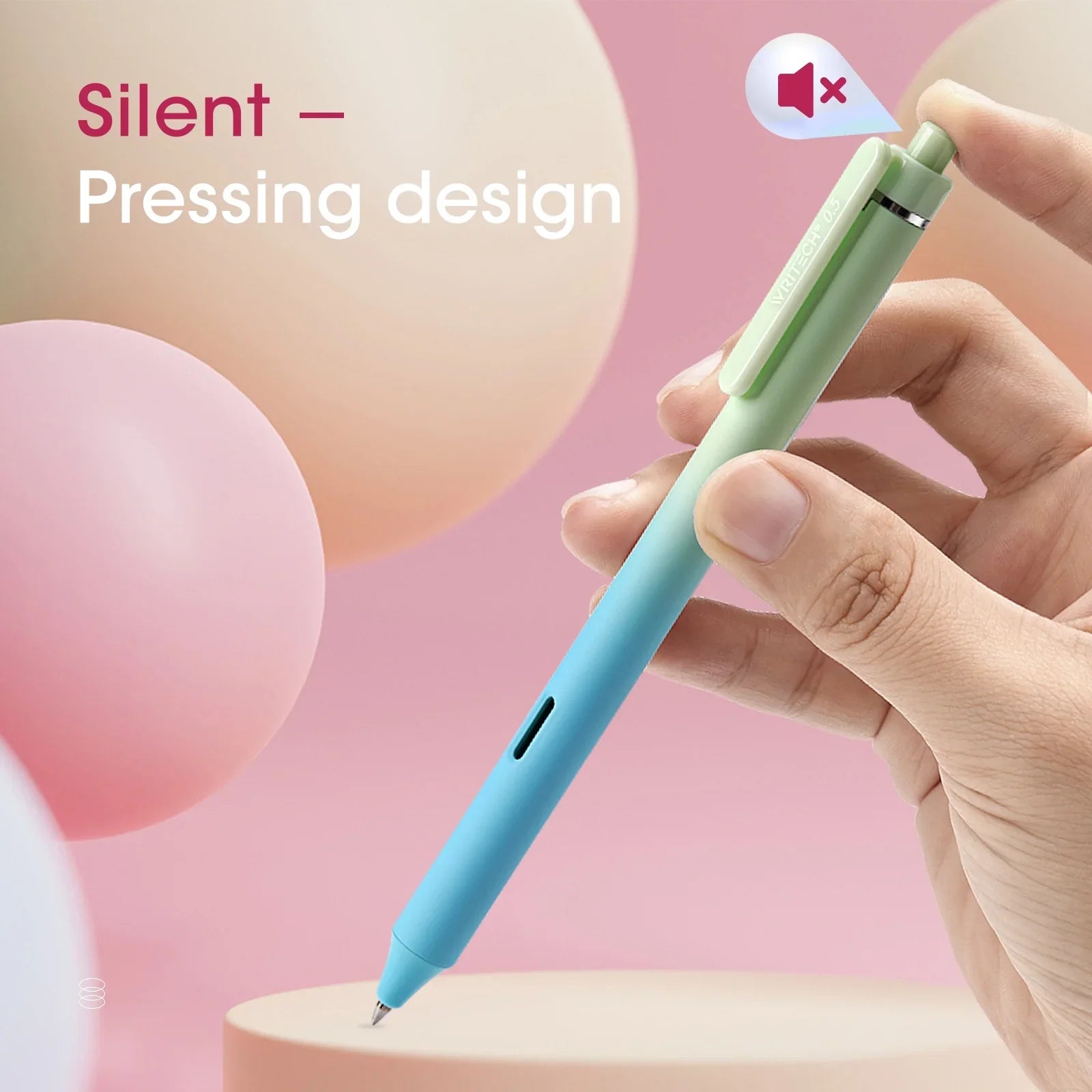 WRITECH Retractable Gel Ink Pens: 8ct Black 0.5mm Fine Point Tip Pen Comfort Grip Smooth Writing with Aesthetic Gradient Color Barrel for Journaling Note Taking Sketching No Bleed & Smear