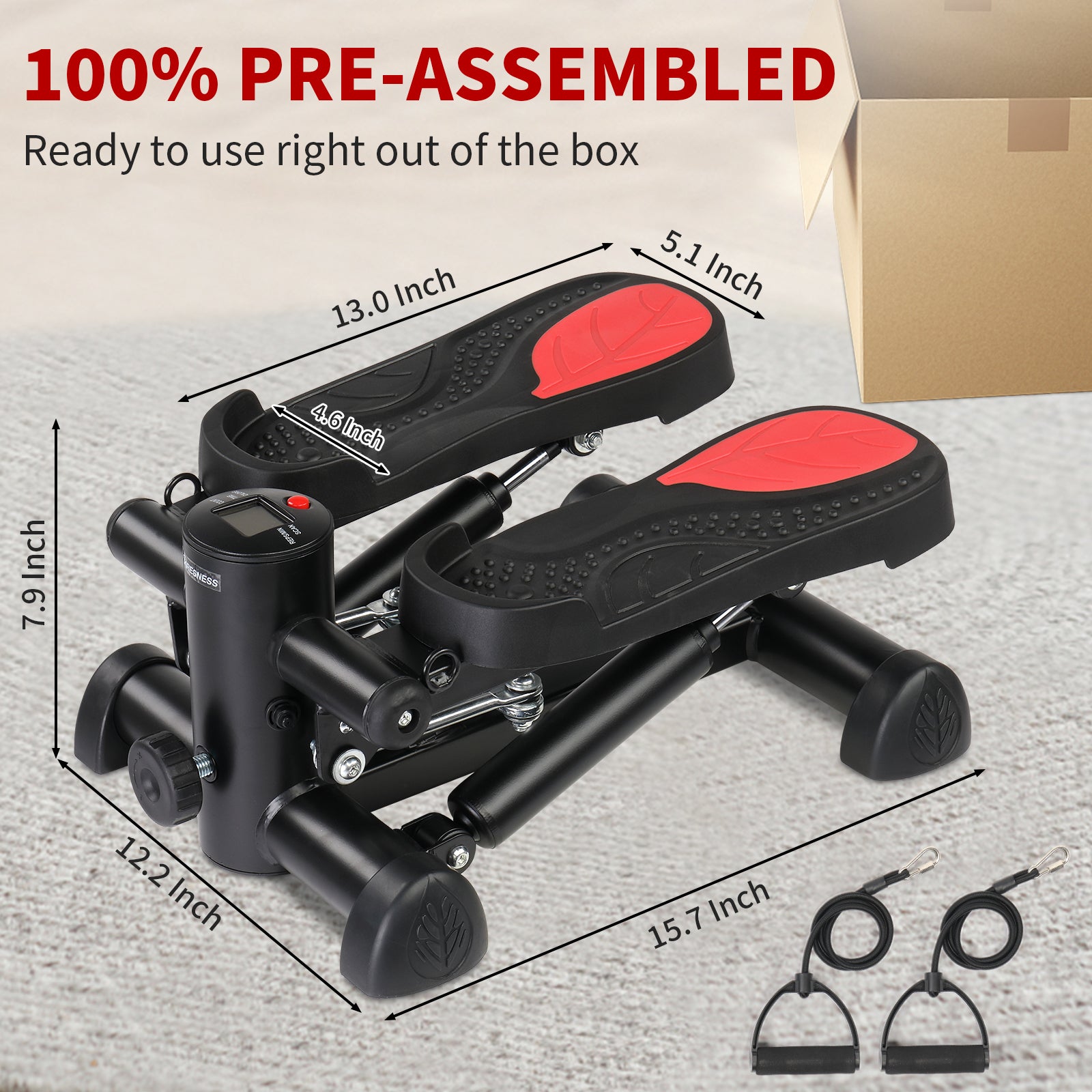 Zimtown Mini Stair Stepper with Resistance Bands, Portable Stepper Exercise Machine, Adjustable Resistance Design, Red
